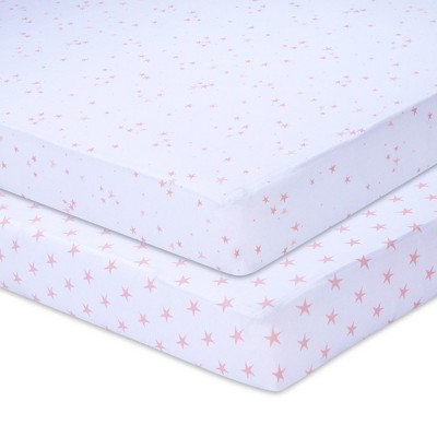 Everyday Kids 2 Pack Baby Cradle Sheets – 100% Cotton Jersey Knit, Breathable & Soft – Fits Most Cradles – Blue Clouds & Blue Star Designs