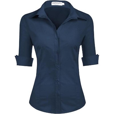 Zeagoo Womens 3/4 Sleeve Button Down Shirt Slim Fit Work Blouses Cotton Dress Shirts Office Tops