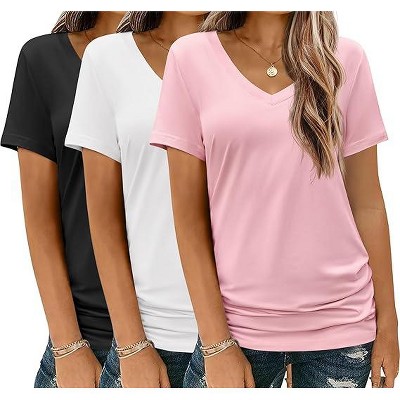 Imily Bela Womens T Shirt Deep V Neck Short Sleeve Casual Fit Basic Fashion Top