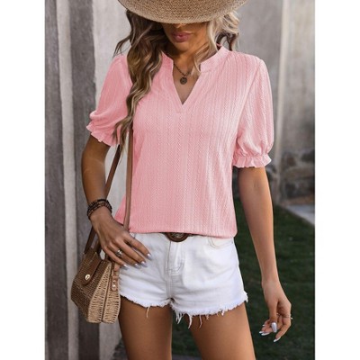 Zeagoo Fall Sweaters for Women 2024 Casual Long Sleeve Shirts V Neck Pullover Puff Slim Fit Tops