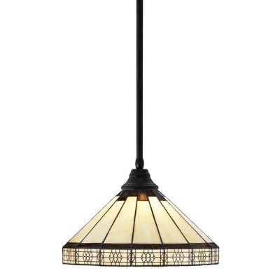Toltec Lighting Any 1 - Light Pendant in Matte Black with 15" Honey & Brown Mission Art Glass Shade