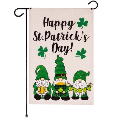 G128 Garden Flag Happy St. Patrick's Day Three Leprechaun Gnomes 12"x18" Double Sided Burlap Fabric