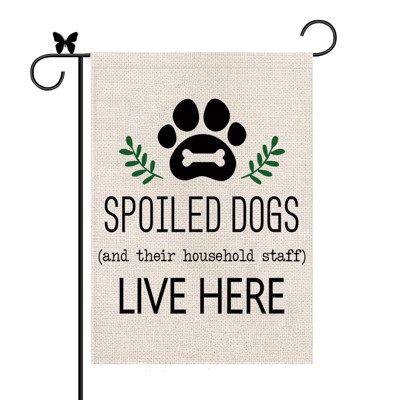 Dog Garden Flag Spoiled Dogs Vertical Burlap 1 Sided There Household Staff Live Here