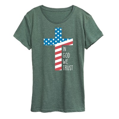 Women's - Instant Message - In God We Trust Flag Cross Short Sleeve Graphic T-Shirt