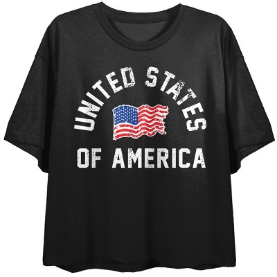 United States Of America Flag Crew Neck Short Sleeve Women's Black Crop Top