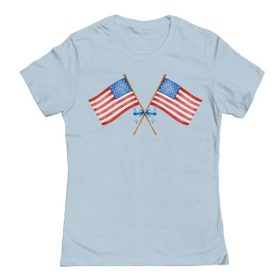Rerun Island Women's Amercian Flag And Bow Americana 4Th Of July Short Sleeve Graphic Cotton Cropped Loose T-shirt - Caviar L