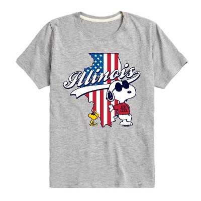 Boys' - Peanuts - Illinois American Flag Snoopy And Woodstock Short Sleeve Graphic T-Shirt