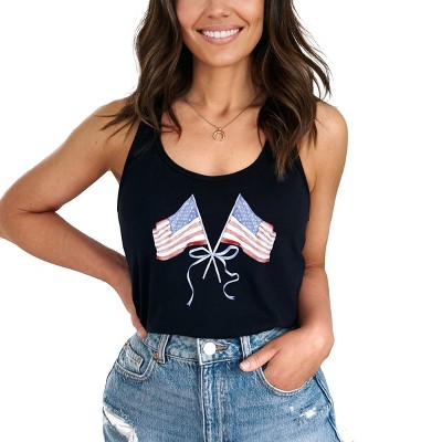 Women's - Instant Message - American Flag Bow Graphic Racerback Tank