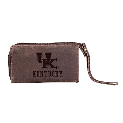 Evergreen NCAA Kentucky Wildcats Brown Leather Women's Wristlet Wallet Officially Licensed with Gift Box
