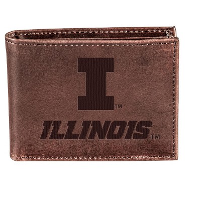 Evergreen NCAA Illinois Fighting Illini Brown Leather Bifold Wallet Officially Licensed with Gift Box
