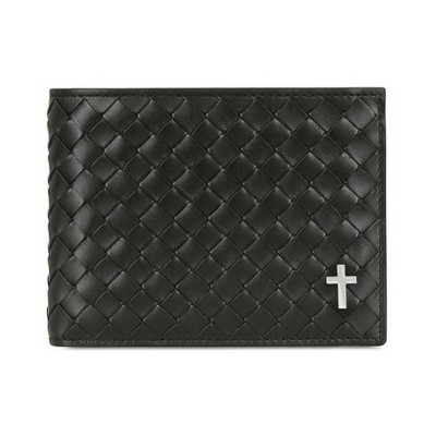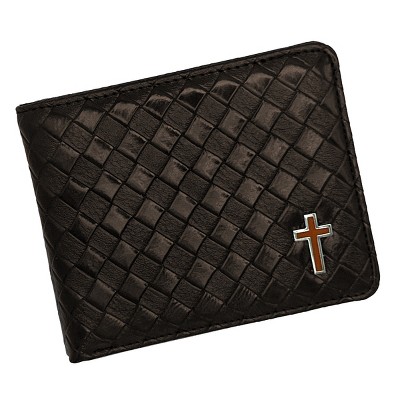 Steeltime Men's Braided Black Vegan Leather Cross Wallet and Black IP ID Bracelet Set