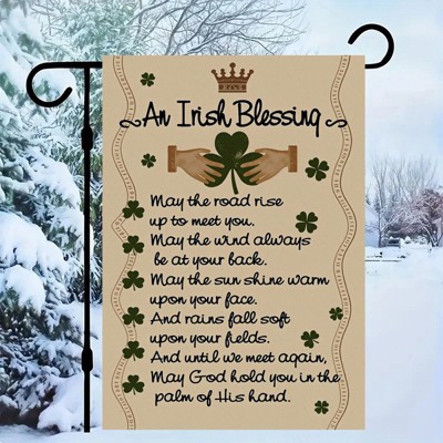 St Patricks Day Garden Flag Outside, An Irish Blessing Quote Welcome Yard Outdoor Flag Single Sided 12x18in