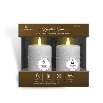LumiPur 2pk 2"x3" Signature Natural Glow Flickering Flameless LED Wax Pillar Candle Gray Fog
