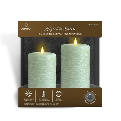 LumiPur 3pk 4" /5"/ 6" Basics Flameless Flickering Wax Pillar LED Candles Linen White