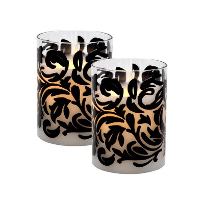 LumaBase Battery-Operated LED Glass Candles with Flickering Flame - Set of 2