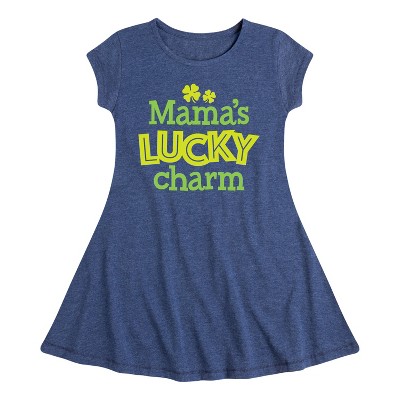Girls' - Instant Message - St. Patrick's Day Mama's Lucky Charm Fit & Flair Cap Sleeve Graphic Dress