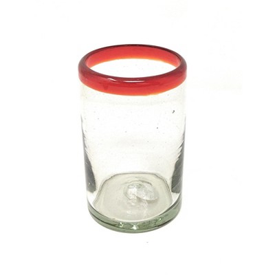 Dos Sueños Mexican Hand Blown Drinking Glasses - Red Rim - 14oz - Single Glass