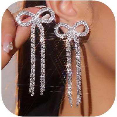 SmallRig 3.3" Long Rhinestone Chandelier Earrings | Crystal Fringe Dangle for Women