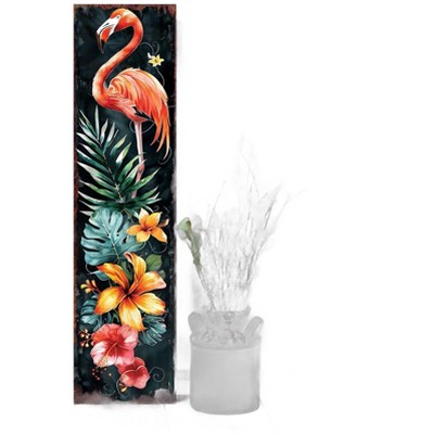 HomeRoots 36" Pink And Blue Tropical Floral Solid Wood Flamingo Porch Sign