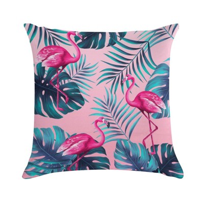 Tropical Pattern With Pink Flamingos Pillow Covers 18x18 Decorative Throw Pillows Soft Square Cushion Covers for Couch Sofa Bedroom