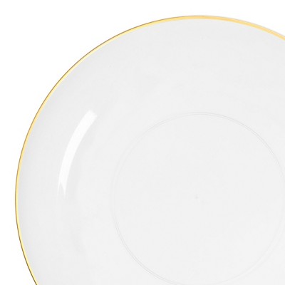 Smarty Had A Party 10.25" Clear w/ Gold Rim Organic Round Plastic Dinner Plates - 120 pcs