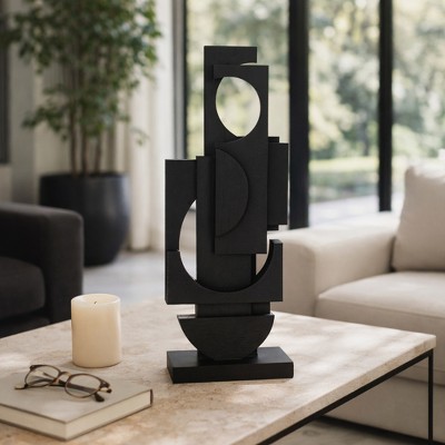 Modern Stacked Sculpture for Home Decor - Contemporary Decorative Figurine Accent for Shelf, Table, Office, Mantel, and Room Decor - 24", Black