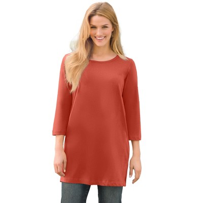 Woman Within Perfect Three-Quarter-Sleeve Scoopneck Tunic