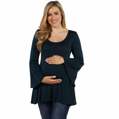 24seven Comfort Apparel Womens Long Bell Sleeve Flared Maternity Tunic Top