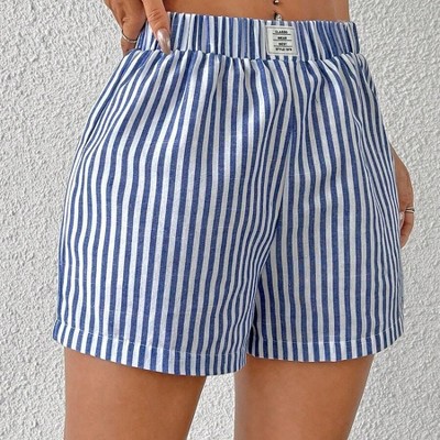 Women's Striped Elasticity Waist Loose Wide Leg Shorts Summer Casual Comfortable Soft Pants