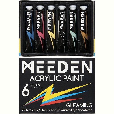 MEEDEN Glitter Acrylic Paint Medium, 6 Tubes 22ml/0.74oz High Viscosity Shimmer Paints, Art Craft Paints with Glitter, Iridescent Paints