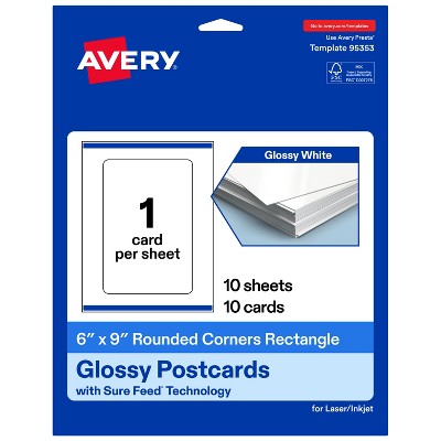 Avery Glossy White Postcards, 6" x 9" Rectangle Rounded Corners