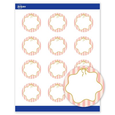 Avery Round Cards, 2", Pink Stripes with Gold Bow Design, Matte