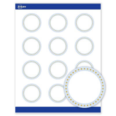 Avery® Cards, 2" Diameter, Blue Border w/ Gold Dots, 120ct