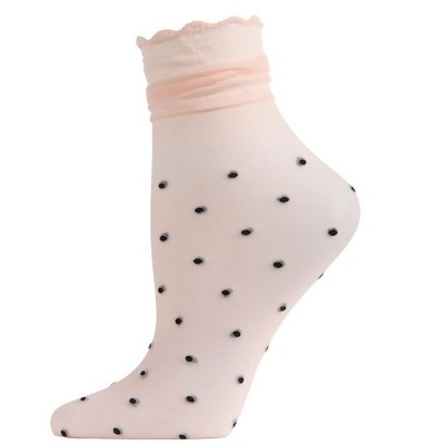 Memoi Women's Sheer Polka Dot Ruffle Cuff Anklet Sock