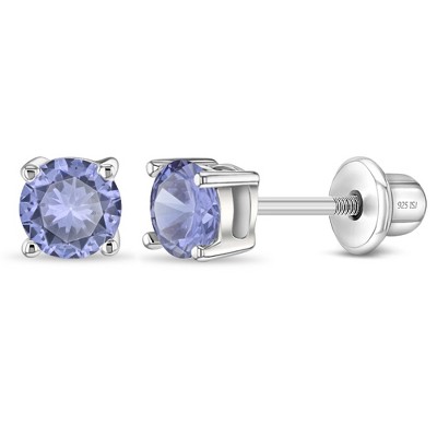 Girl's Classic Round Solitaire Screw Back Sterling Silver Earrings - In Season Jewelry