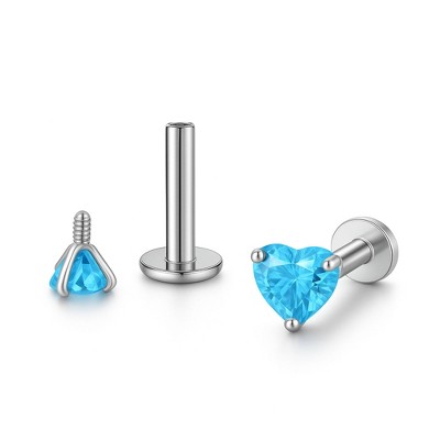 Small Heart Solitaire Flat Back Stud Earrings Body Piercings by Ginger Lyne 2 Sets 3mm CZ Stainless Steel 16g 6mm and 8mm Lengths