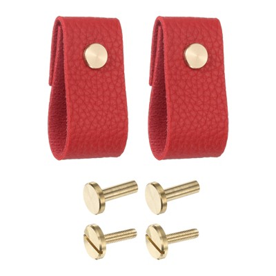 Unique Bargains Vintage Leather Drawer Pulls with Screws for Dresser Closet 2 Pcs