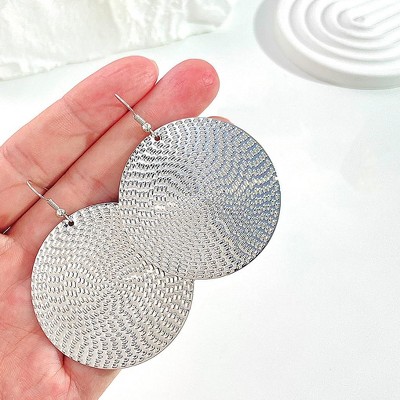 Extra Large Circle Dangle Drop Earrings, Two-Tone Gold & Silver Textured Disc Statement Boho Jewelry