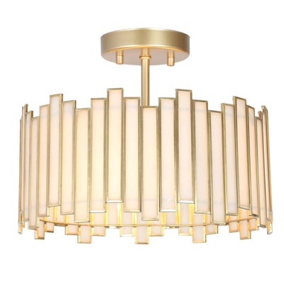 LNC Hemaaolay 3-Lights 12.5-in Drum Glass LED Semi-flush Mount Lights,Gold/Black