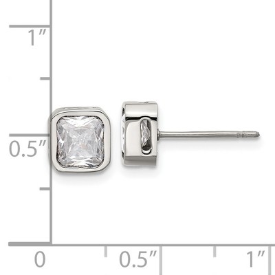 Chisel Stainless Steel Polished 6mm Cubic Zirconia Squared Stud Earrings