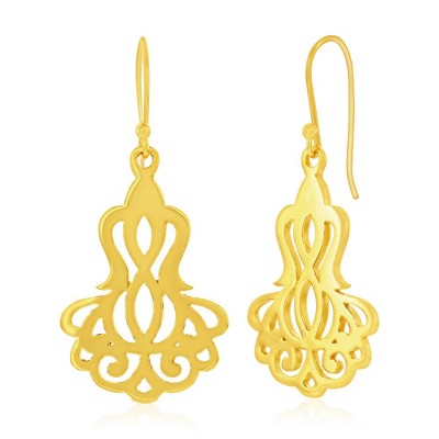 Bella Silver Sterling Silver, Bell Shaped Filigree Design Dangle Earrings - Gold Plated - Gold