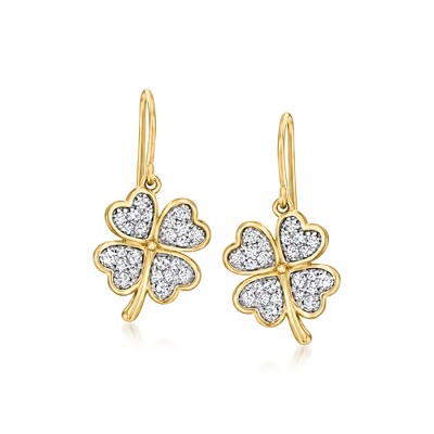 Ross-Simons 0.60 ct. t.w. CZ Clover Drop Earrings in 18kt Gold Over Sterling