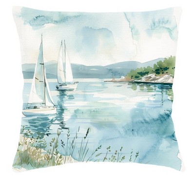 Stupell Industries Seats Overlooking Beach Outdoor Decorative Throw Pillow, 18 x 18