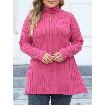 Women's Turtleneck Sweater Long Sleeve Warm Soft Casual Knitted Sweater Fall Winter Pullover Sweater Pink XL