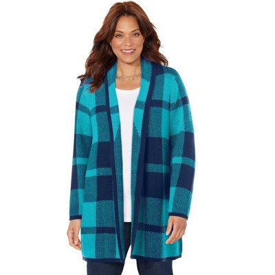 Woman Within Jacquard Open Front Duster Sweater