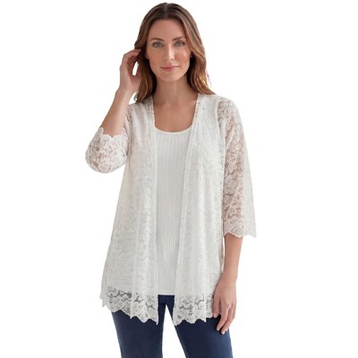 Roaman's Lace 2-Piece Tank And Cardigan Set