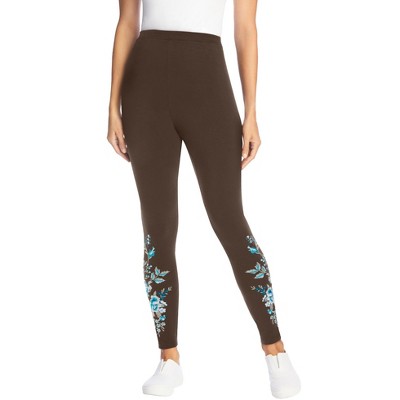 Woman Within Tall Stretch-Cotton Knit Pull-On Embroidered Leggings
