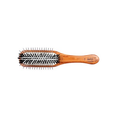 Bass Pet Brushes The Hybrid Groomer Shine & Condition, Patented & Award Winning, Natural Bristle + Alloy Pin Bamboo Handle Palm Style