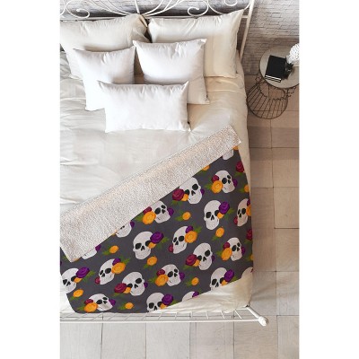 Avenie Halloween Floral Skulls Fleece Throw Blanket - Deny Designs