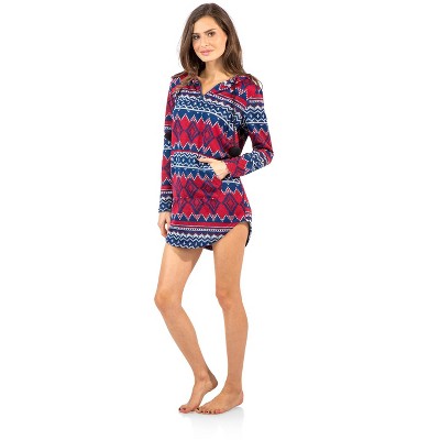 Ashford & Brooks Women's Sweater Fleece Zip Up Hooded Sleep Lounge Shirt
